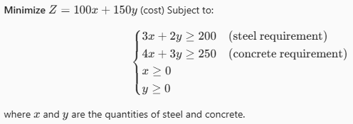 - Scenario: A farmer has a piece of land that he wants to use to plant two types of crops: Wheat and Corn. Each type of crop requires a certain amount of water and fertilizer. The farmer has a limited supply of both water and fertilizer and wants to maximize his profit.
